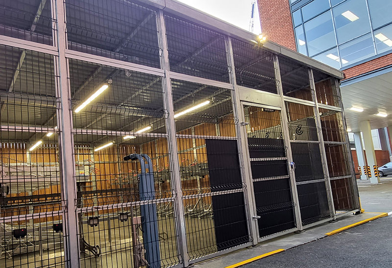 Bike stores offer a highly configurable facility for bike parking that enables either vertical, semi-vertical and level housing of bikes. They provide opportunities to incorporate multiple stores in a sequence with individual door access to each unit. The footprint required for this design is minimised by enclosing only the bike rack space, usually accommodating a single-row layout with options for Sheffield stands, semi-vertical and two-tier rack types.