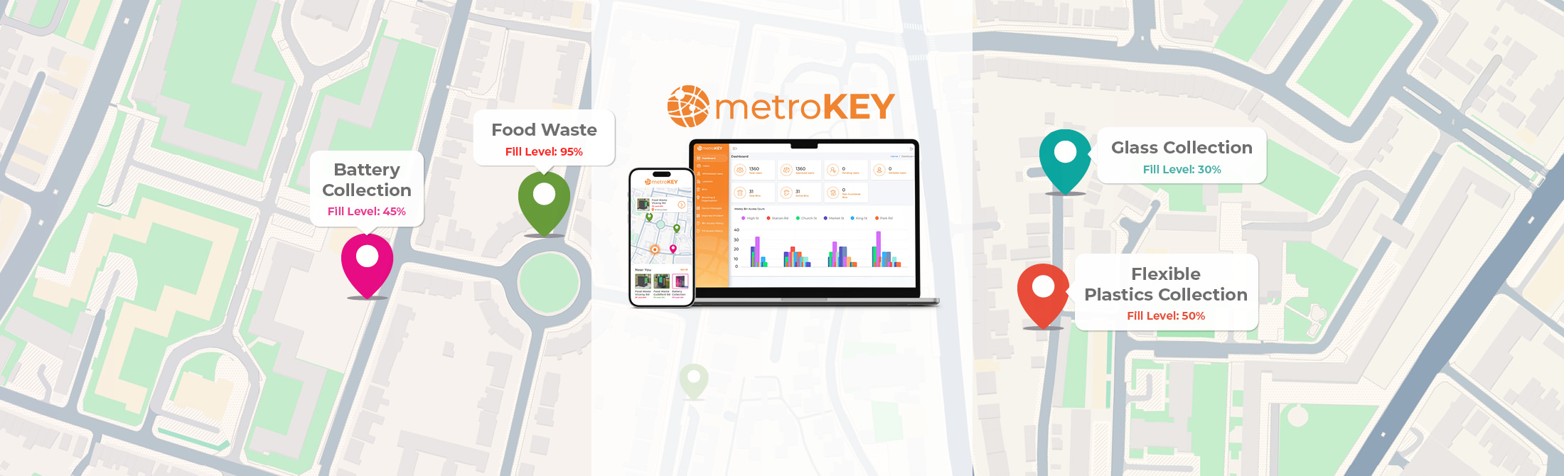 For residents, the metroKEY smartphone app shows live fill levels, helping them avoid depositing waste in units that are nearly full and locate the nearest available bin instead.
