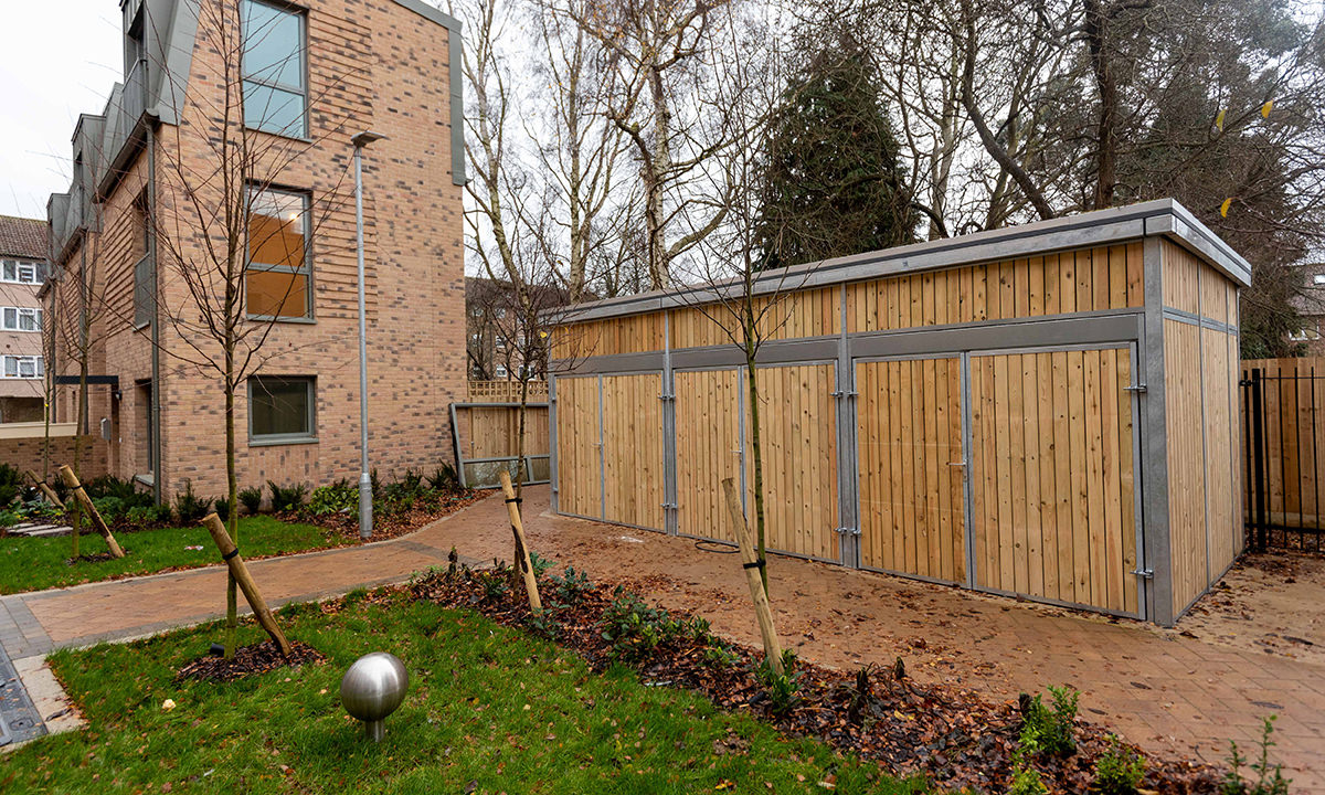 As part of the extensive refurbishment of external amenity spaces, metroSTOR worked closely with main contractor, Wilmott Dixon to provide the designs, manufacture and installation of both metroSTOR bike stores and bin stores – providing residents with secure bike parking and improved waste and recycling storage, as well as supporting the wildlife species by incorporating sedum green roofs on all of the bike stores.