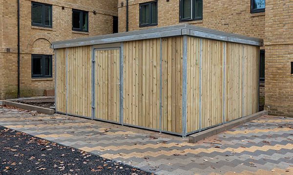 Our outside storage solutions are available in a variety of specifications, including access options and in some cases a green roof. In addition, the security fixings on the fully welded steel frame of the outdoor storage locker and storage unit ensure that possessions secured inside cannot be removed, even if the panel integrity is compromised by attempted theft. The customisable features available across the range meant that cost-effective and secure outdoor storage solutions can be found for any application, with cladding and finish selections designed to align with wider project palettes and external storage strategies.